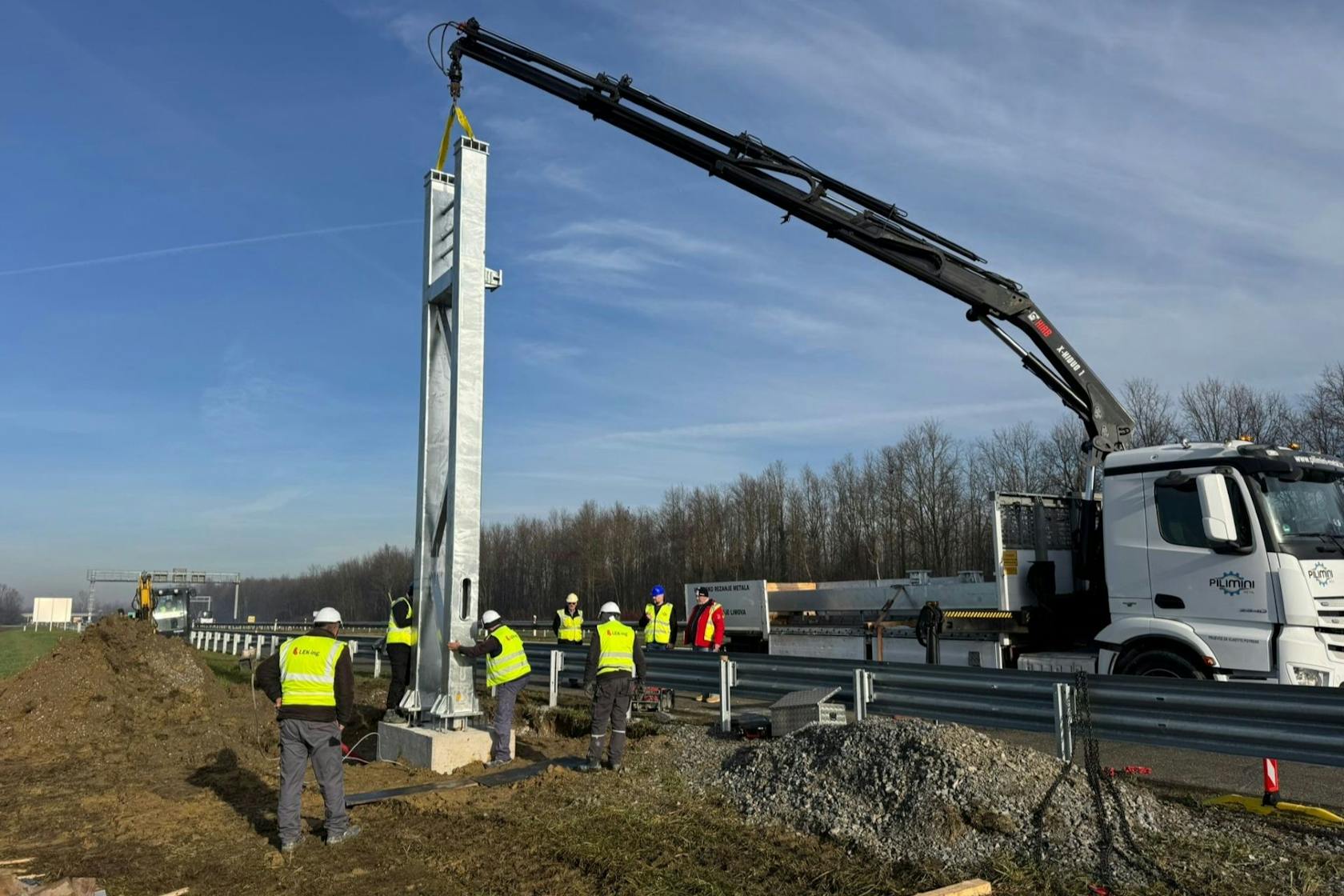 The first toll gate was installed on the A3 motorway in the Popovača – Kutina section. It consists of three segments with a total length of 33 meters and weighs 10 tons. Over the next eight months, SkyToll will build and connect another 211 toll gates of the new Crolibertas system.